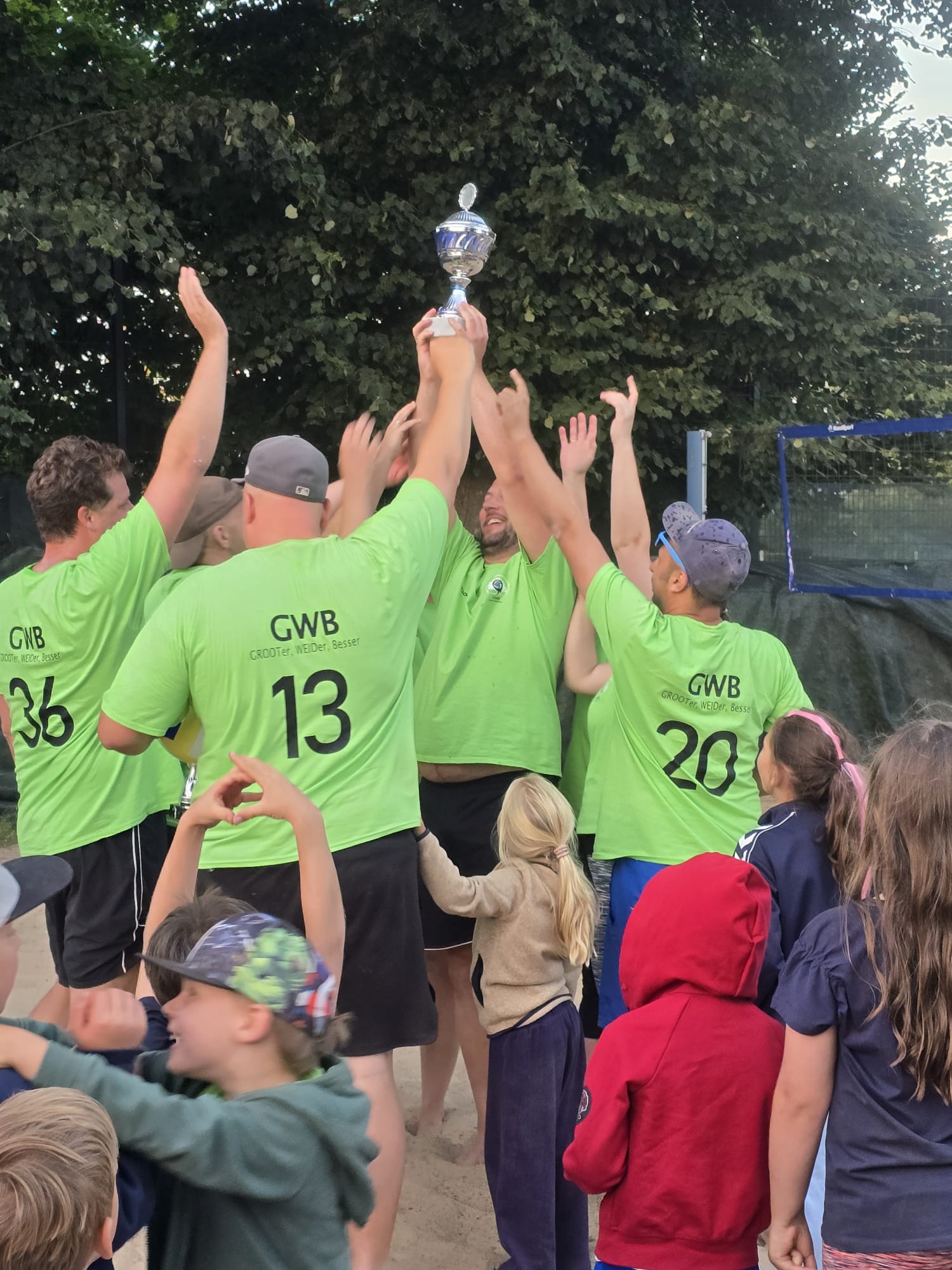 Bei bestem Wetter besuchten über den Tag ca. 250 Gäste den Turniertag und konnten sich mit kalten Getränken, leckerem vom Grill und einem reichhaltigen Kuchenbuffet stärken. Gleichzeitig konnten unsere Besucher ein hochklassiges Feld mit spannenden Spielen beobachten und am Ende einen verdienten Sieger aus der Groot Weid feiern.